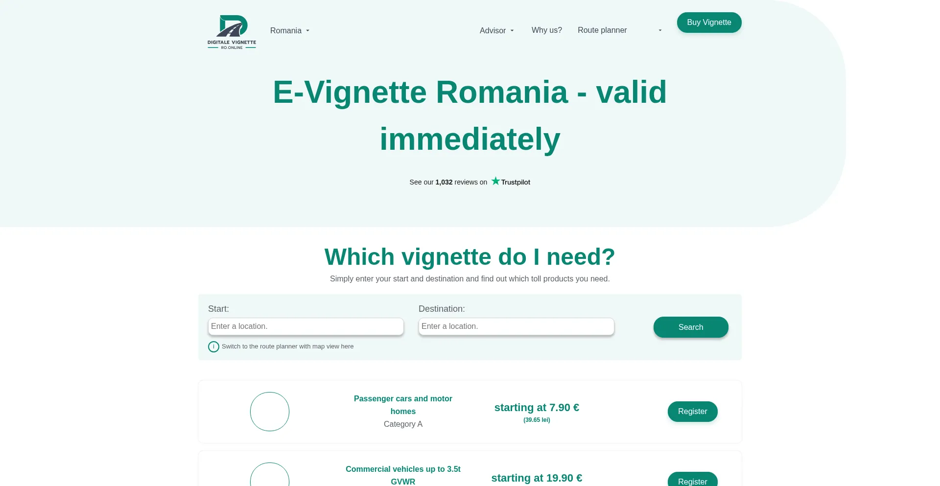 E-vignette Romania from 8,90 € - Valid immediately