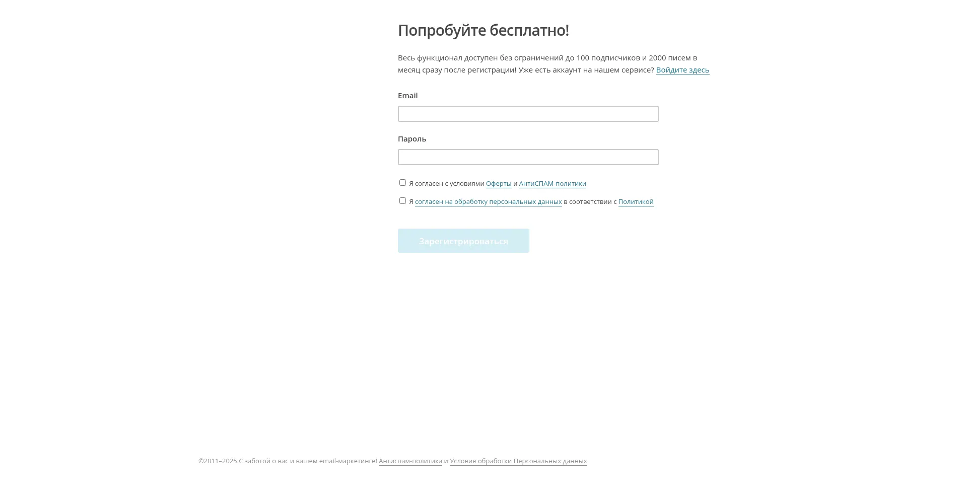 Весь функционал доступен без ограничений до 100 подписчиков и 2000 писем в месяц сразу после регист�...