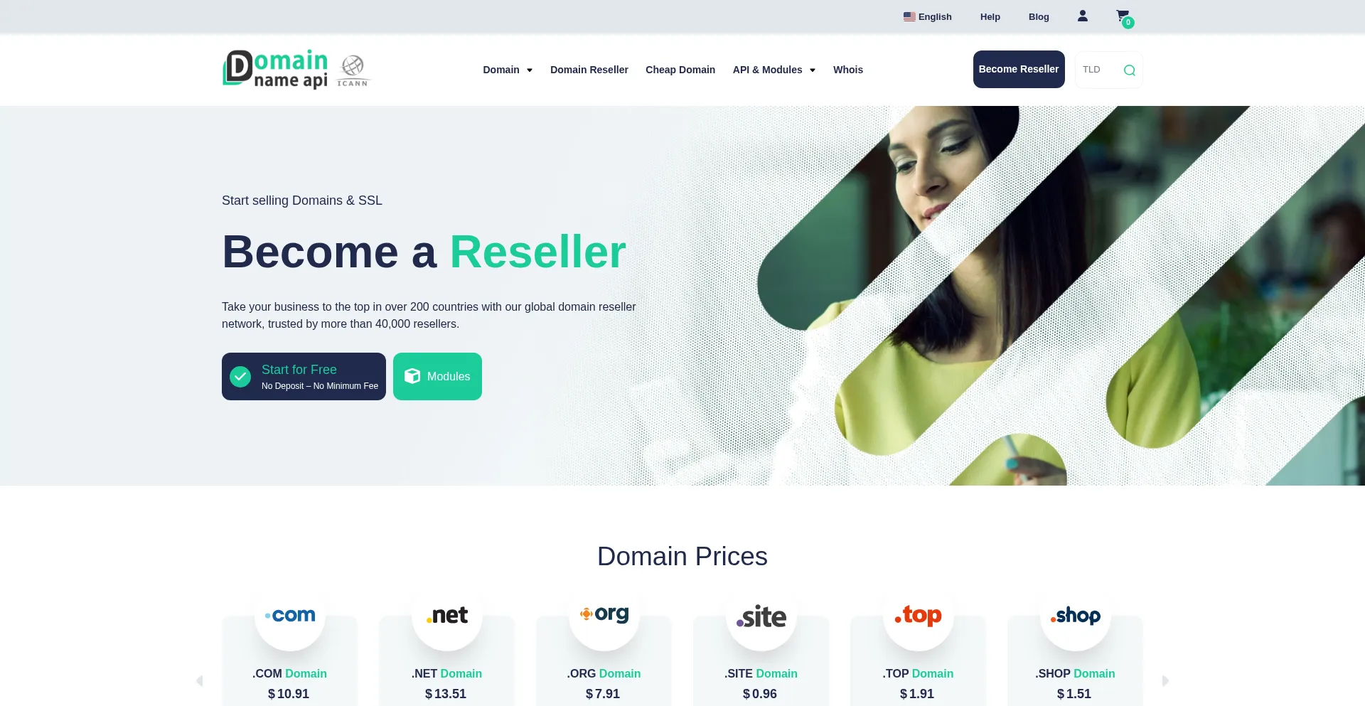 Domain Reseller Program with free entry, WHMCS, Blesta, WiseCP modules and REST API integration. Grow your business with ease.