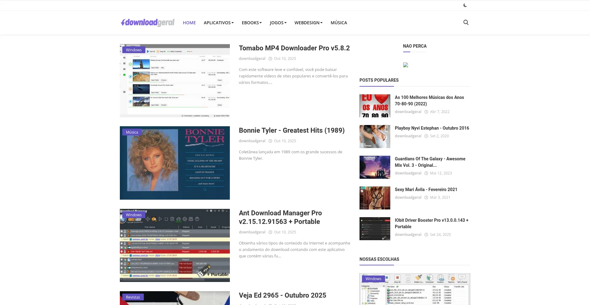 DownloadGeral é um site que disponibiliza o download grátis de softwares, aplicativos, freewares, músicas, jogos, livros, revistas e muito mais.
