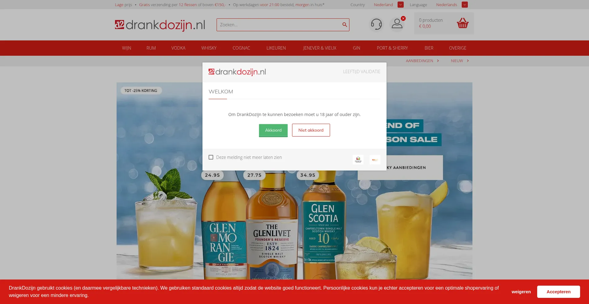 Die Website implementiert Cookie-Zustimmungsmechanismen in Compliance mit Datenschutzregulierungen wie DSGVO oder CCPA. Dies demonstriert, dass drankdozijn.nl Datenschutzstandards einhält und Benutzern Kontrolle über persönliche Datenerfassungspraktiken bietet.
