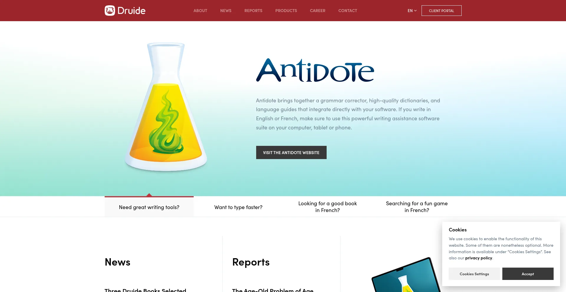 Druide informatique is a Quebec-based company specializing in the production and distribution of software, such as Antidote and Typing Pal.