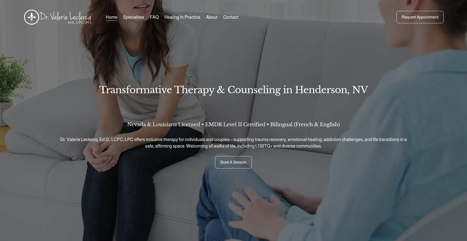 Licensed therapist for adults and couples with Dr. Valerie Leclercq using EMDR CBT and trauma informed care in Henderson and the Las Vegas Valley.
