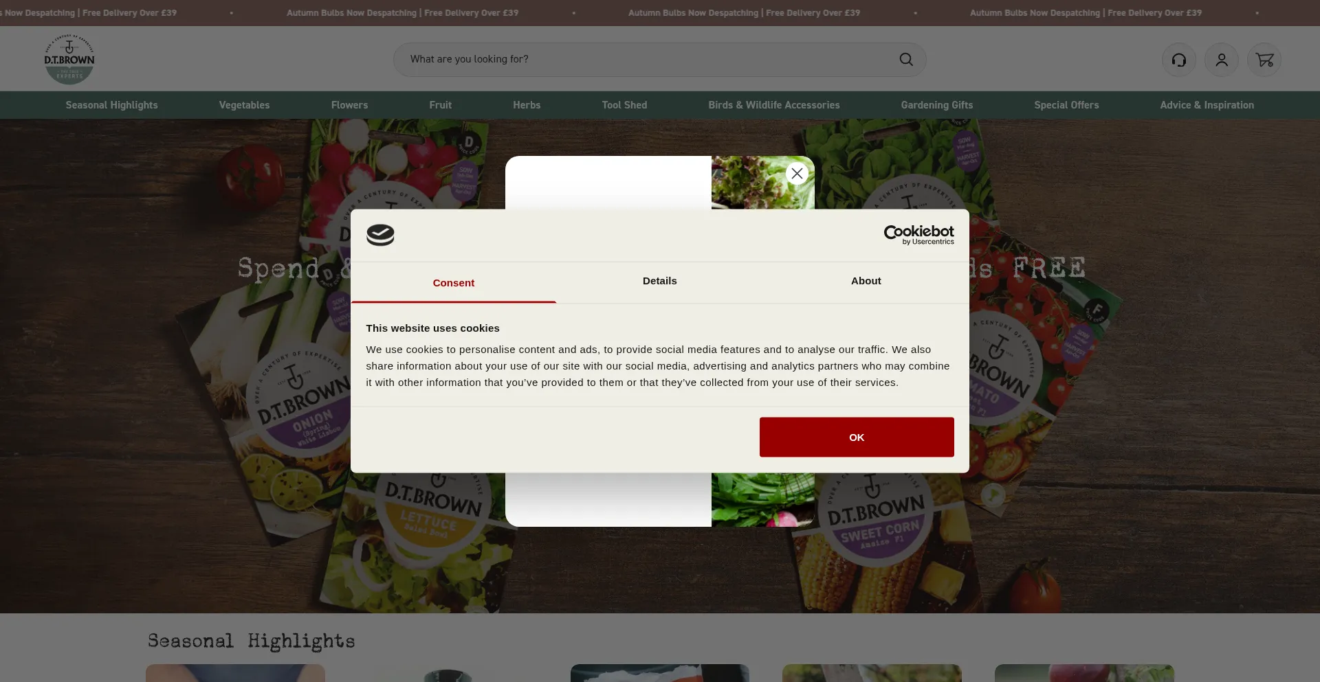 Die Website implementiert Cookie-Zustimmungsmechanismen in Compliance mit Datenschutzregulierungen wie DSGVO oder CCPA. Dies demonstriert, dass dtbrownseeds.co.uk Datenschutzstandards einhält und Benutzern Kontrolle über persönliche Datenerfassungspraktiken bietet.