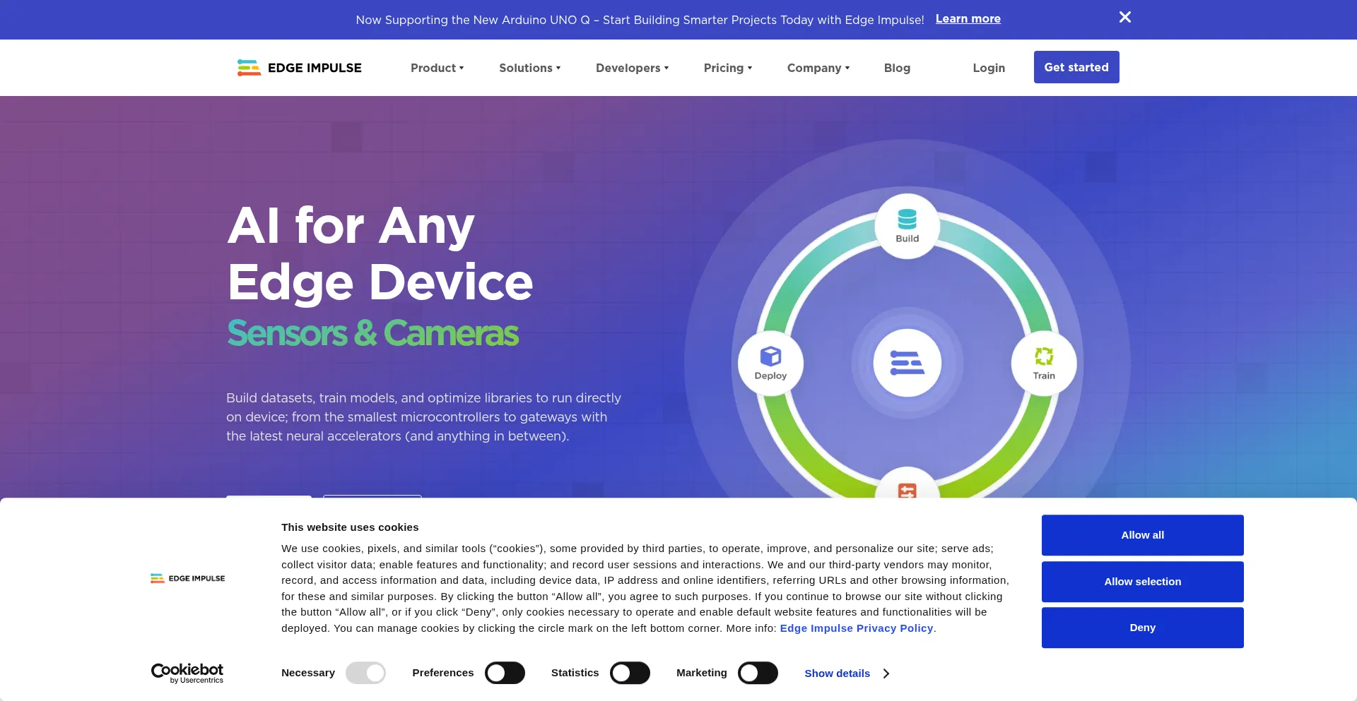 Die Website implementiert Cookie-Zustimmungsmechanismen in Compliance mit Datenschutzregulierungen wie DSGVO oder CCPA. Dies demonstriert, dass edgeimpulse.com Datenschutzstandards einhält und Benutzern Kontrolle über persönliche Datenerfassungspraktiken bietet.