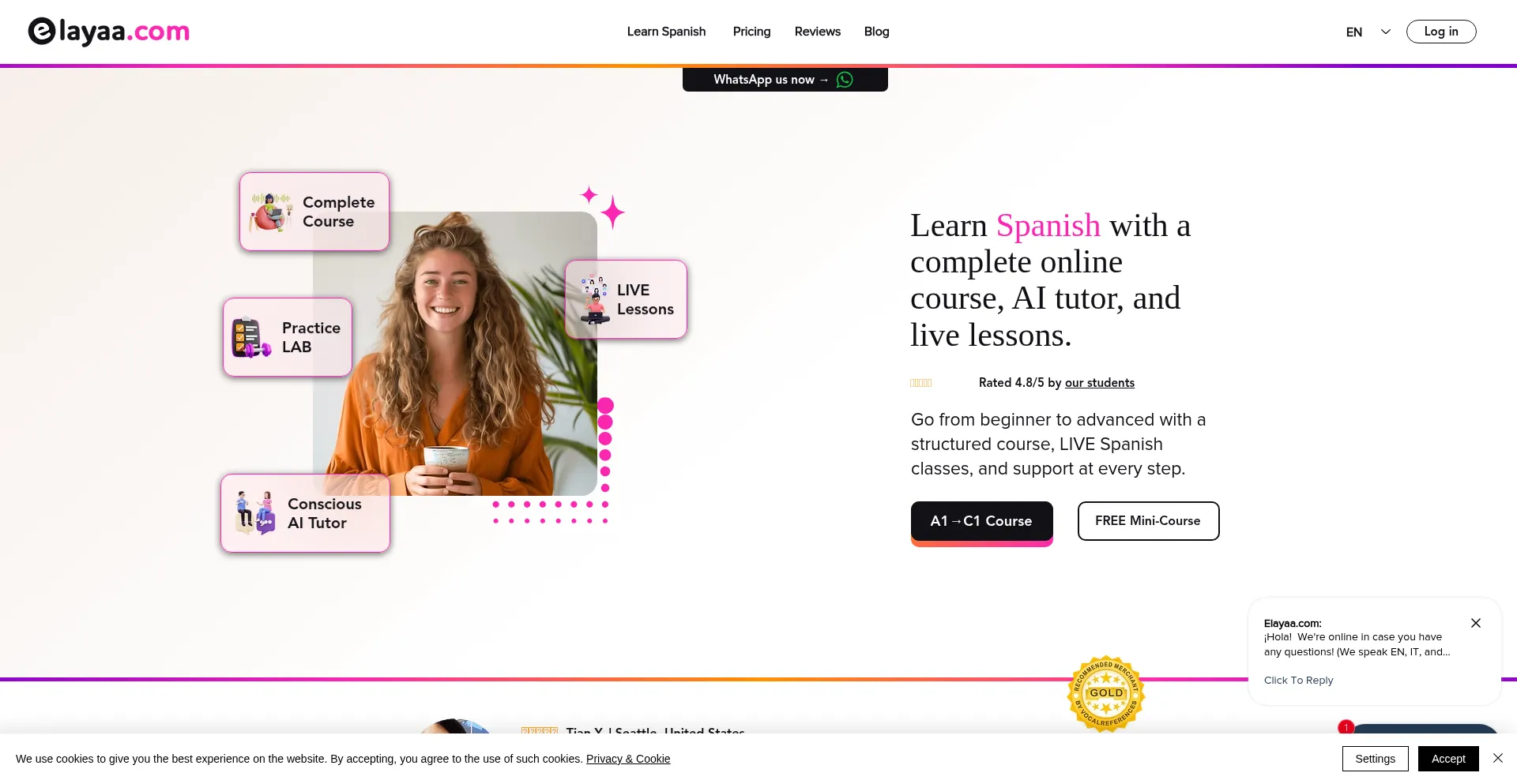 Learn Spanish with a complete online Spanish course, live Spanish conversation lessons, and your own AI tutor. Start speaking Spanish today with Elayaa.