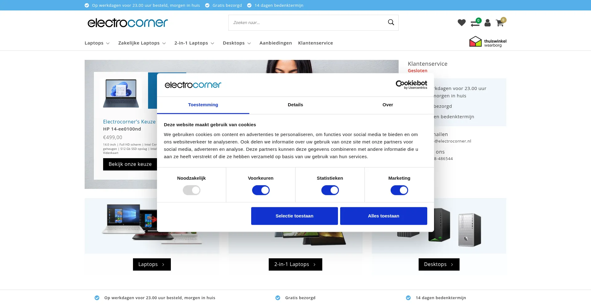 Electrocorner levert Laptops en PC's uit voorraad. Altijd de beste prijs. Wanneer u voor 23.00 uur bestelt, de volgende werkdag al in huis!