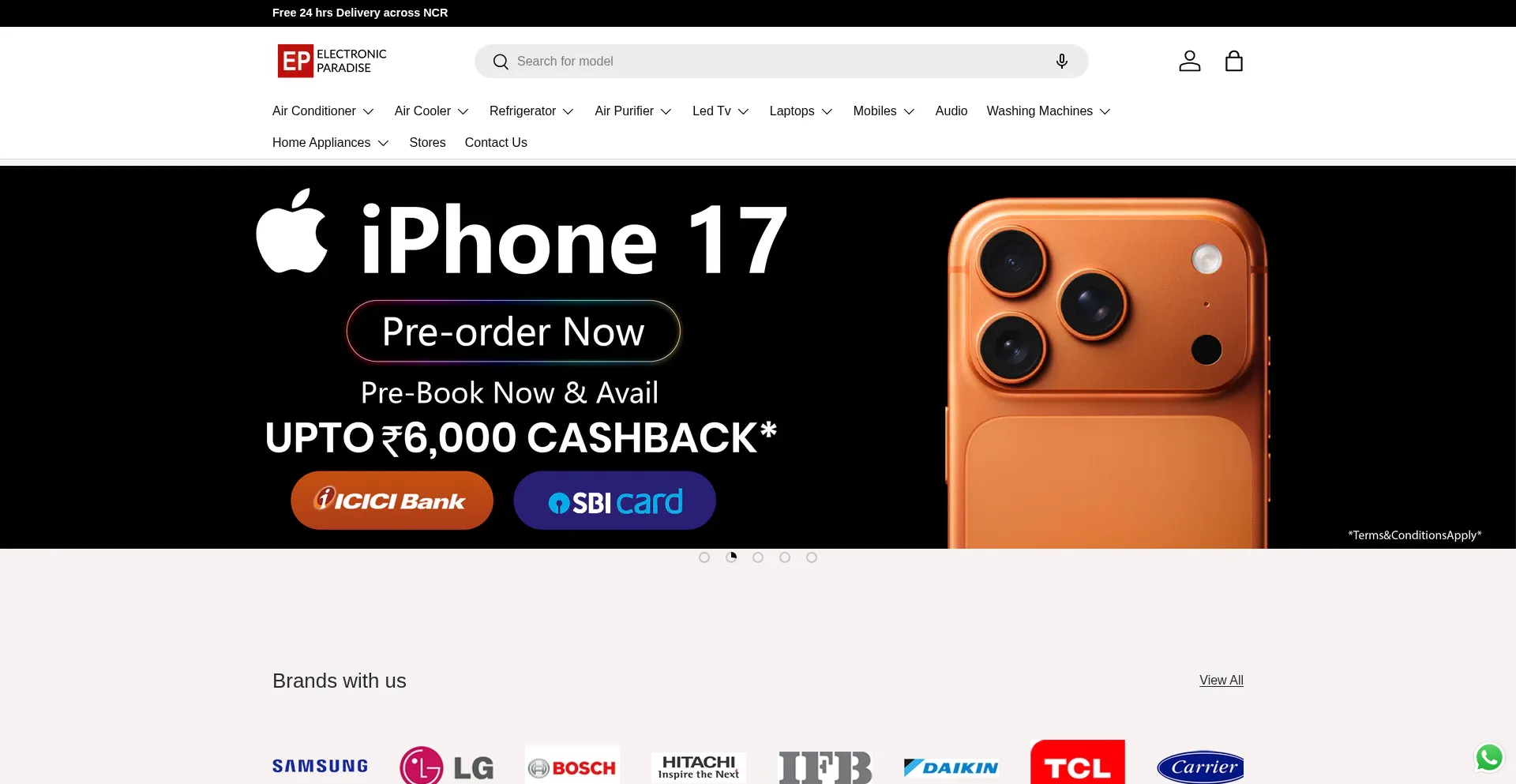 Electronic Paradise is the best Electronic Store in Delhi NCR, where we offer a wide range of high-quality gadgets, the latest mobile phones, home appliances, and kitchen applia...