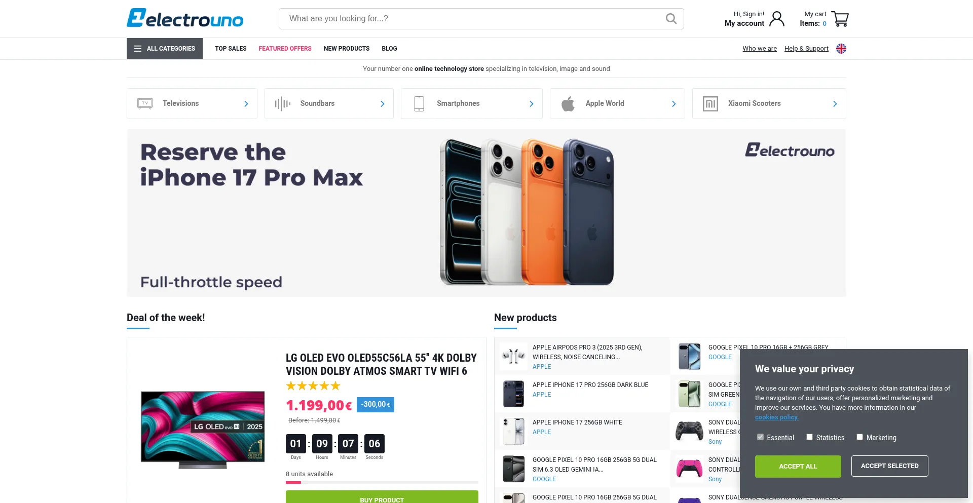 Online electronics store, specialists in televisions for sale in Madrid.