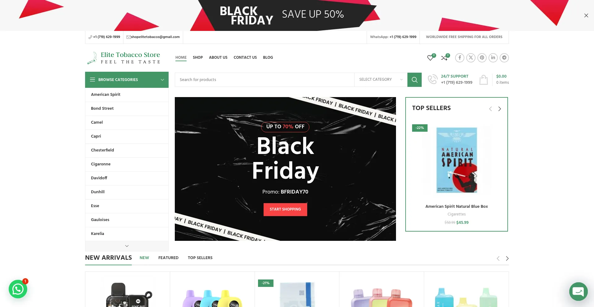 Buy branded cigarettes & top quality vapes online from EliteTobaccoStore.com. We offer best tobacco for sale with worldwide free and fast delivery. Shop now!