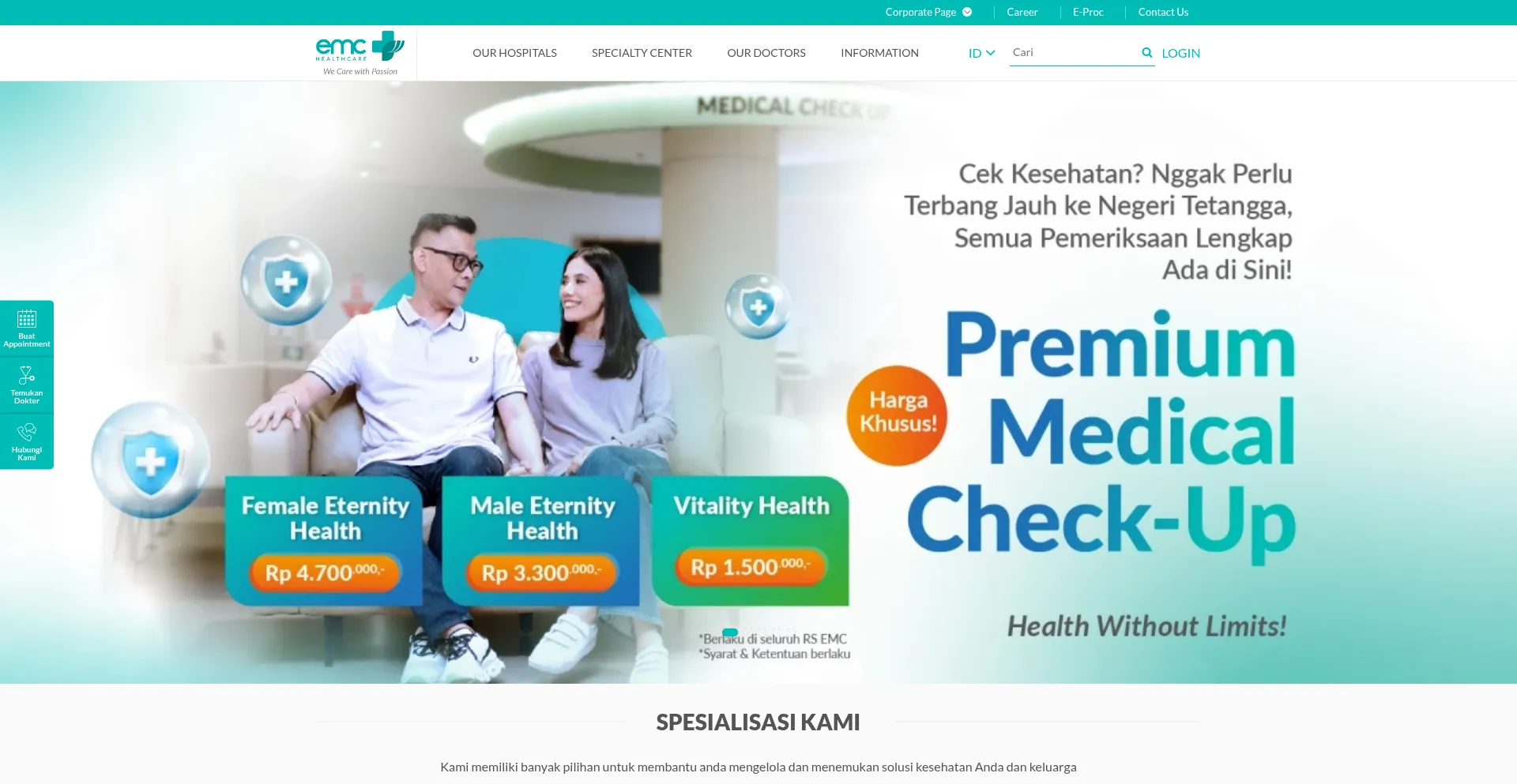 EMC Healthcare menyediakan pelayanan kesehatan unggul dan terpercaya: EMC Alam Sutera, EMC Cikarang, EMC Pekayon, EMC Pulomas, EMC Sentul & EMC Tangerang.