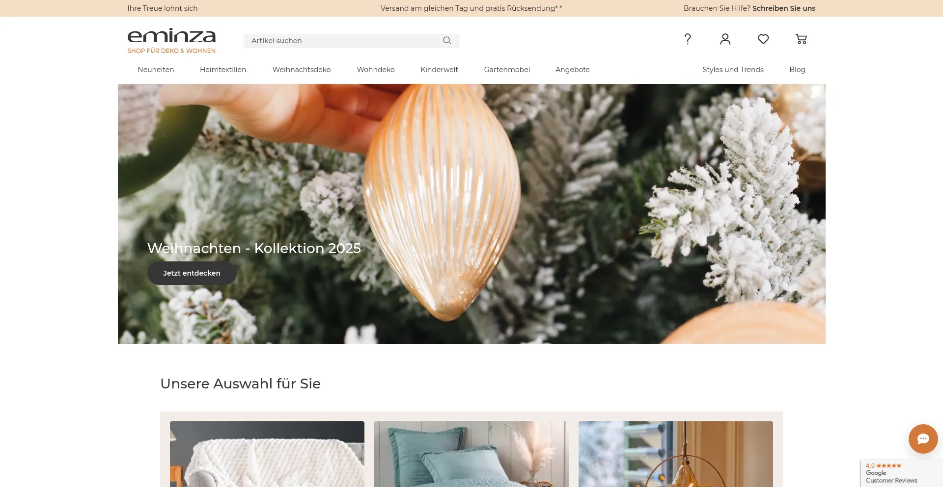 Entdecken Sie unser großes Angebot an Bettwäsche, Weihnachtsdeko, Gartenmöbel und Wohndeko. Hier ist für jeden Stil etwas dabei!