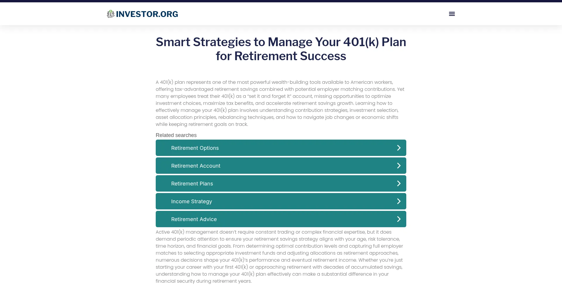 Smart Strategies to Manage Your 401(k) Plan for Retirement Success – Investor.org