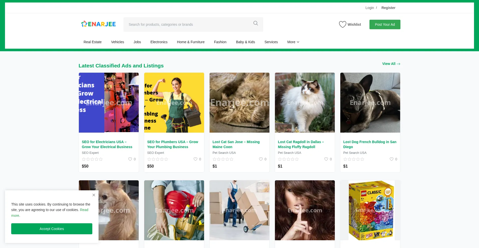Post and explore free classifieds on Enarjee. Buy, sell, rent or hire – from jobs and housing to cars, electronics, services, and more.