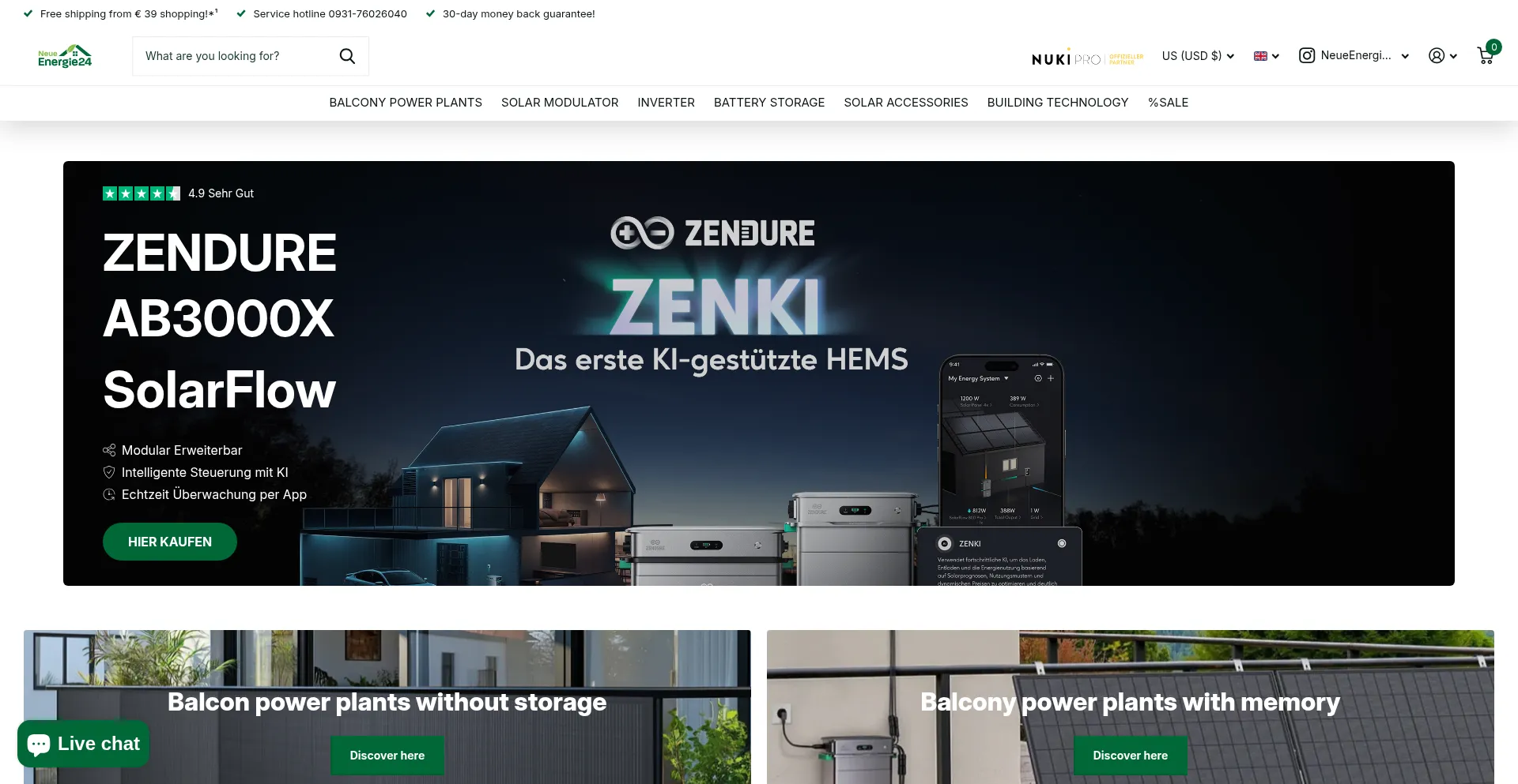 Discover a wide selection of sustainable energy products at NeueEnergie24. From balcony power plants, solar modules, inverters, photovoltaic battery storage to heat pumps and sp...