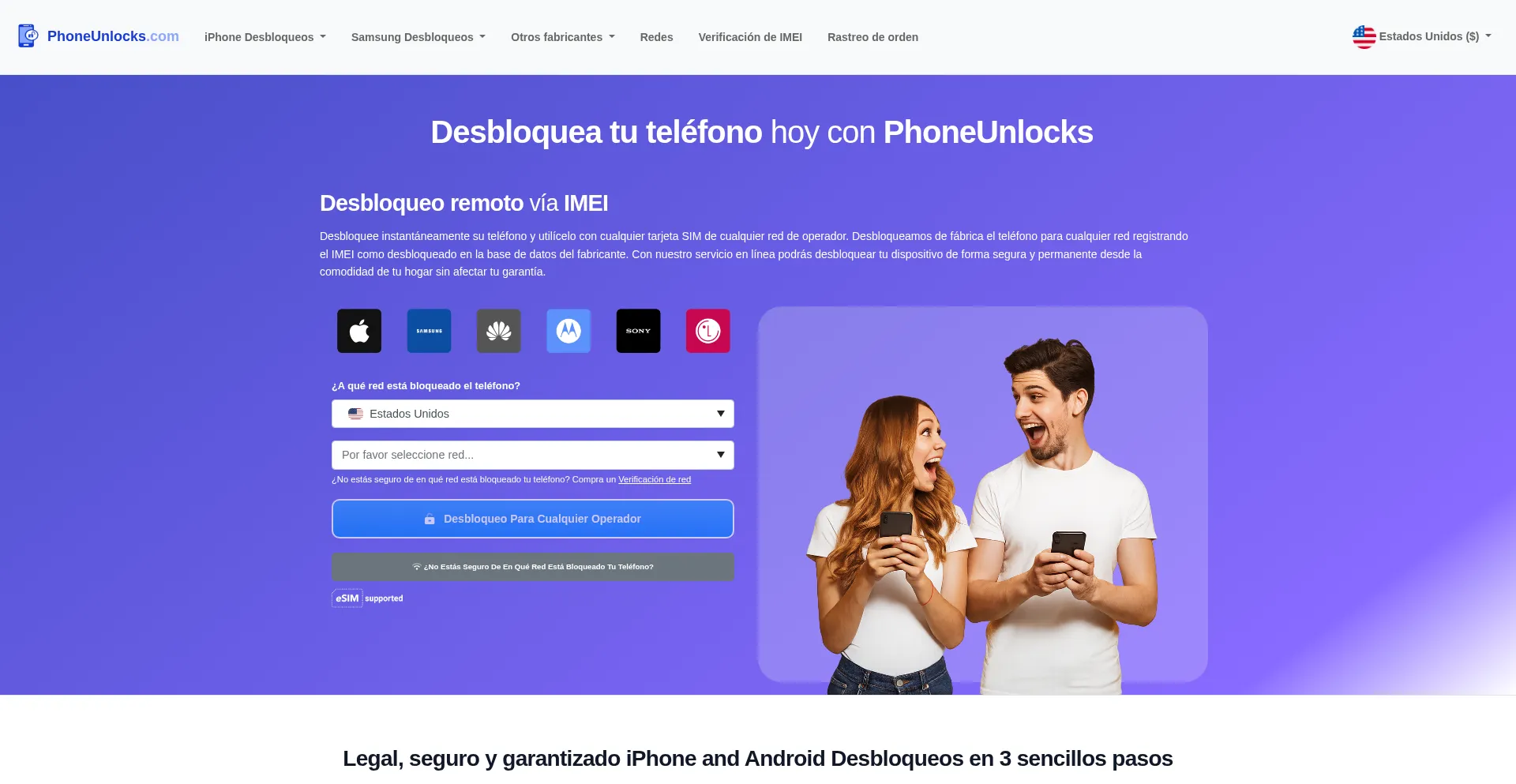 Desbloquee el teléfono instantáneamente y use cualquier operador/red. Con nuestro servicio de desbloqueo de teléfonos en línea, puedes desbloquear tu dispositivo de forma se...