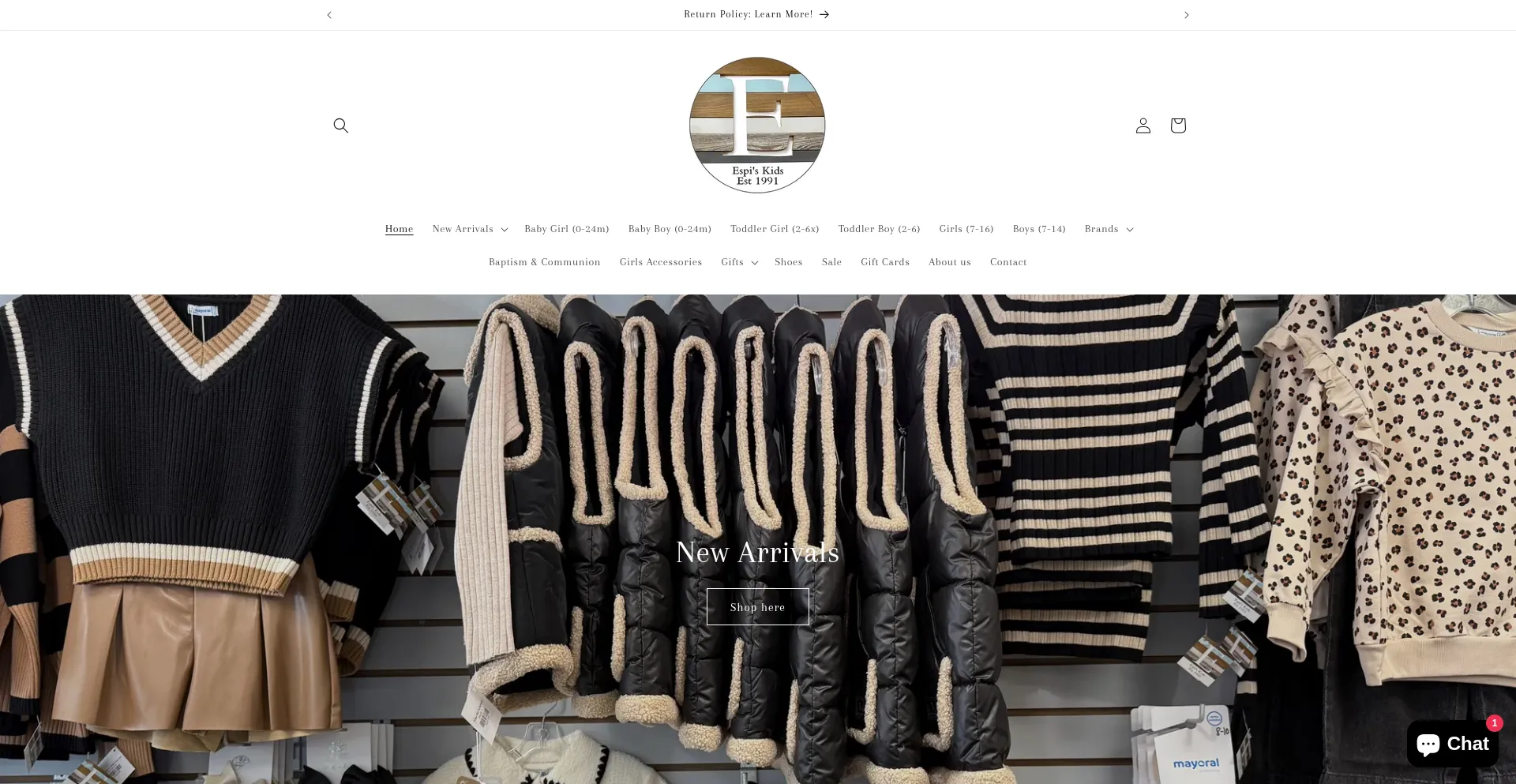 Espi's Kids is a children's clothing store in Visalia, California. Specializing in stylish clothing, books, toys and accessories!