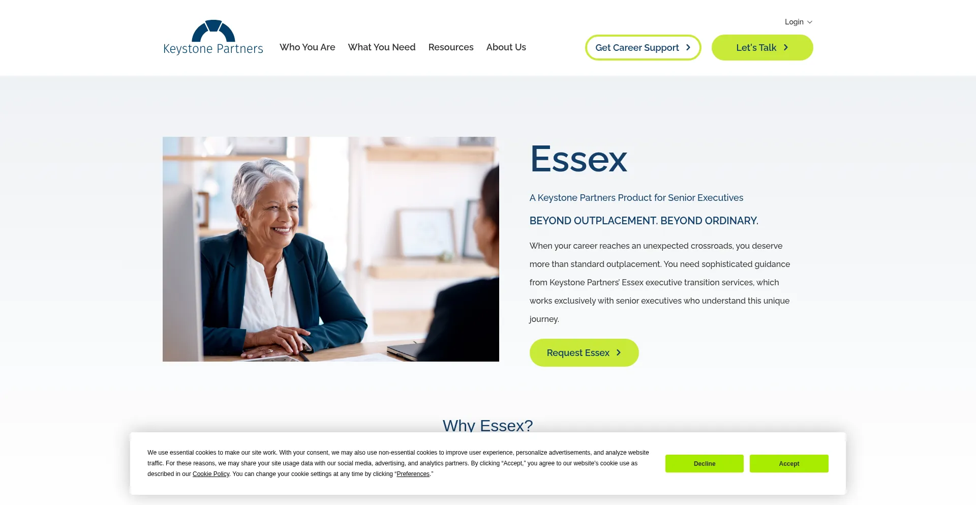 Die Website implementiert Cookie-Zustimmungsmechanismen in Compliance mit Datenschutzregulierungen wie DSGVO oder CCPA. Dies demonstriert, dass essexpartners.com Datenschutzstandards einhält und Benutzern Kontrolle über persönliche Datenerfassungspraktiken bietet.