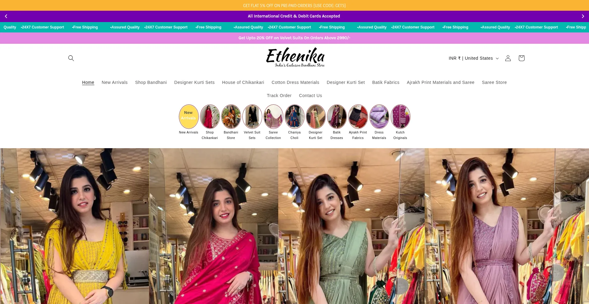 Shop Exclusive Cotton Bandhani Suits Saree Jaipuri Bandhej Suits. Shop Bandhani Fabrics Online at ethenika. Hand crafted Gujrati Bandhej Suits and Fabric. Ethenika is an online ...