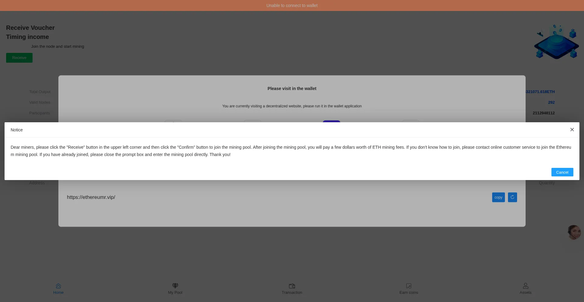 Die Website ethereumr.vip bietet wahrscheinlich Cloud-Mining-Dienste oder Kryptowährungs-Mining-Investitionen an. Einige Plattformen bieten legitime Mining-Mietdienste, während andere gefälschte Mining-Dashboards verwenden können, um virtuelle Erträge anzuzeigen, die nicht abgehoben werden können.