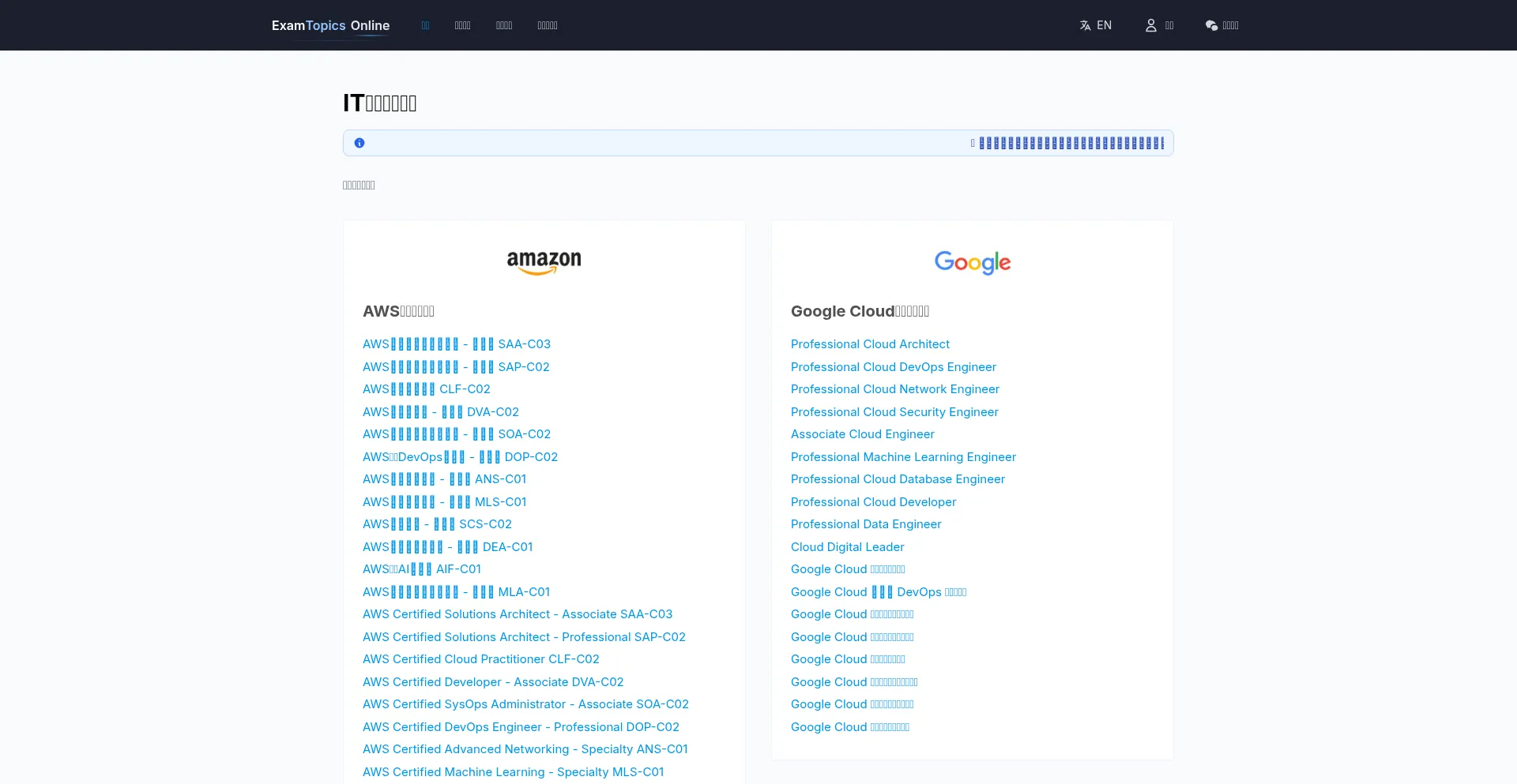 IT认证题库大全 - 涵盖AWS、Google、Azure等题库,小程序练习,轻松掌握IT技能 - ExamTopics