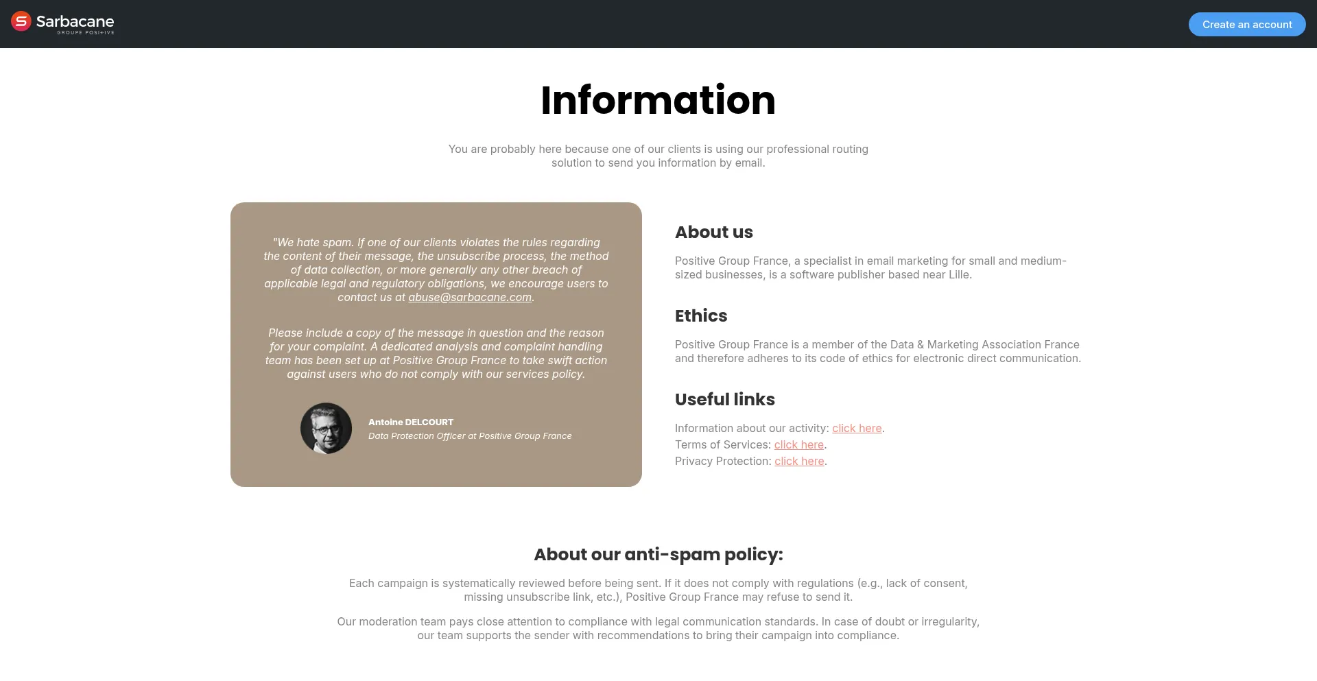 Recevez-vous un email indésirable d'un utilisateur Sarbacane ? Signalez tout abus ou non-respect des règles en nous contactant à [email protected].