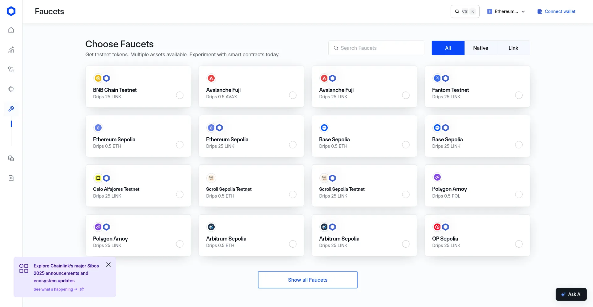 Chainlink Faucets - Get Testnet Tokens
