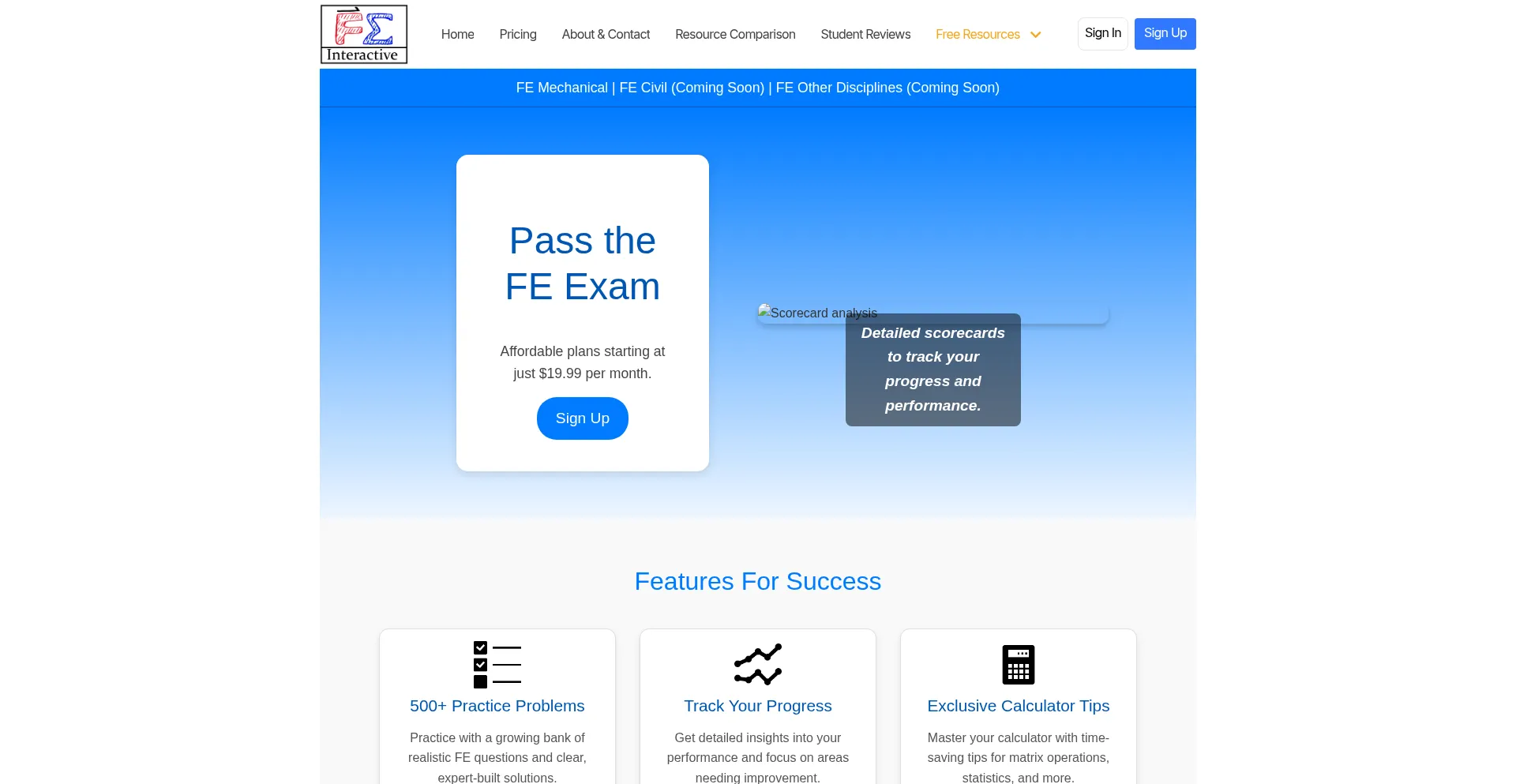 Prepare for the FE Mechanical exam with 500+ practice questions, detailed solutions, analytics, and calculator tips. Affordable plans starting at $29.99/month.