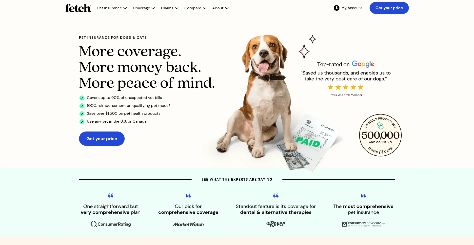 See why Fetch has the best pet insurance in the U.S. for comprehensive coverage, with over 450,000 pets covered. Get paid back up to 90% on unexpected vet bills.