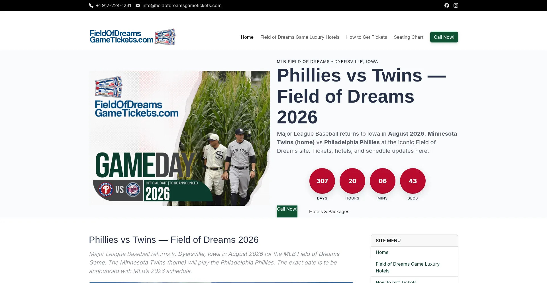 MLB Field of Dreams 2026 — Phillies vs Twins | Tickets, Hotels & Updates