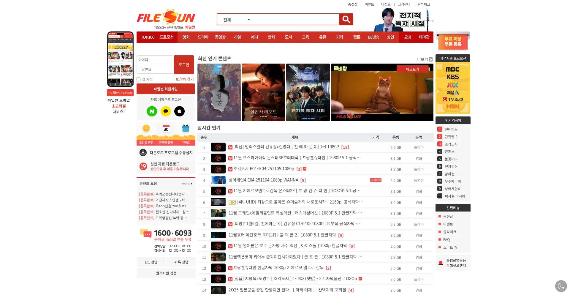 영화, 드라마, 동영상, 게임, 애니, 유틸, 만화, 도서, 웹툰 다운로드