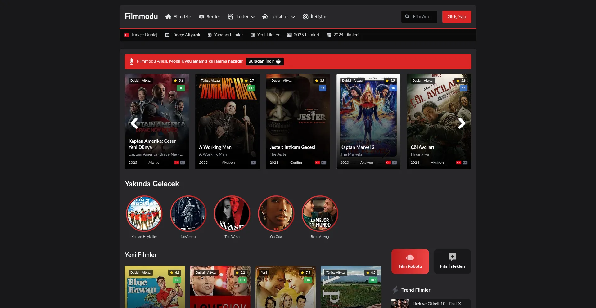 Filmmodu ile film izle, Yerli yabancı filmleri izleyin, Türkçe Dublaj yada Altyazılı 1080p kalitesinde Full HD film izle.