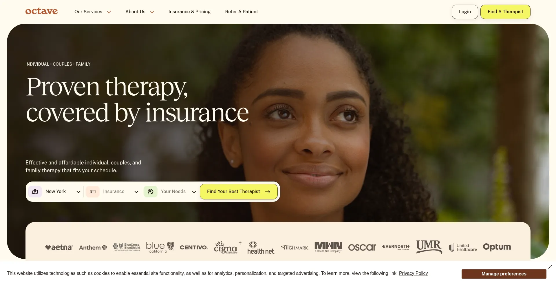Octave is a modern online therapy solution creating a new standard for mental health with individual, couples & Family therapy that works with insurance.