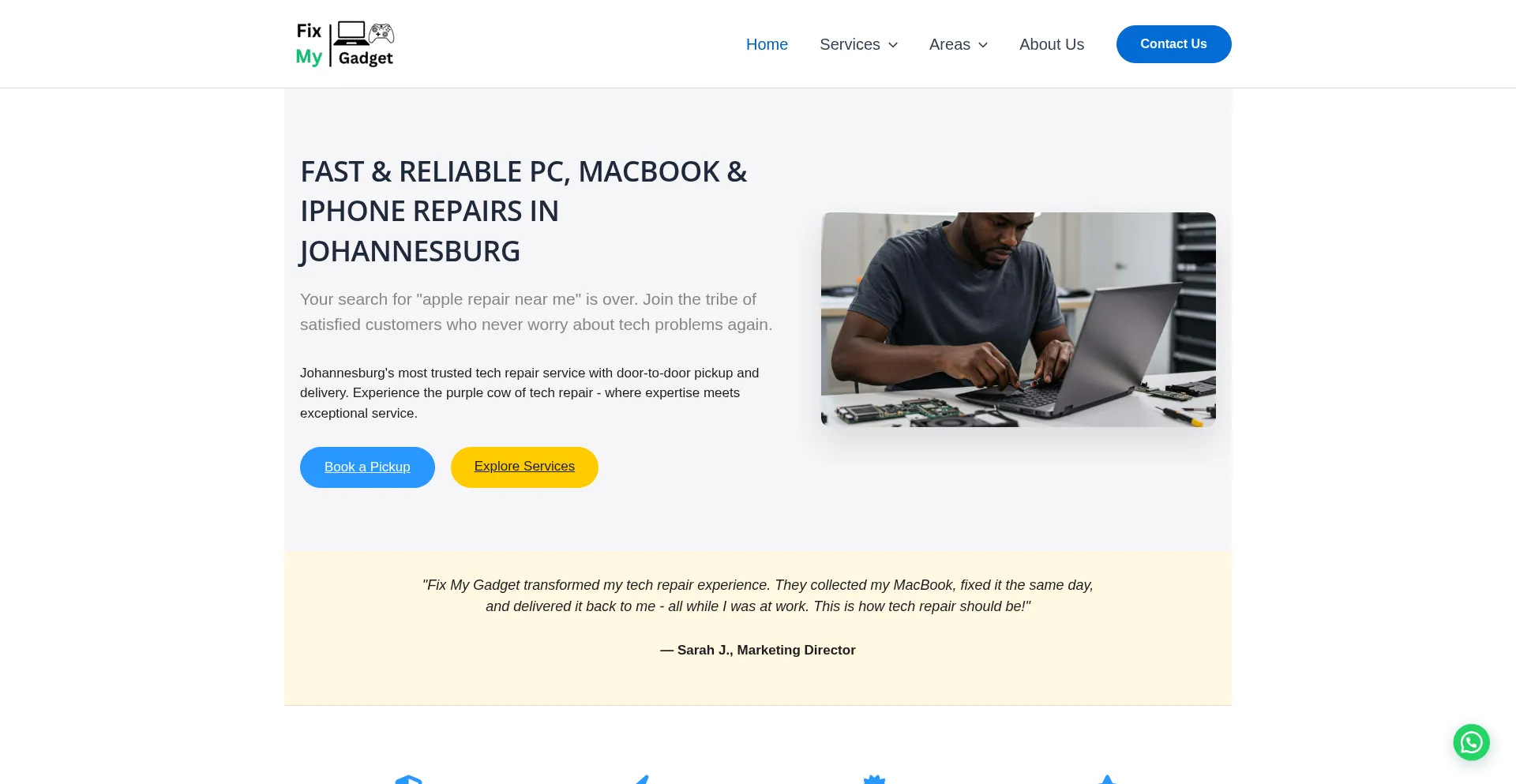 Johannesburg's top-rated tech repair service with free door-to-door pickup & delivery. Same-day PC, MacBook & iPhone repairs by certified technicians. 3-month warranty.