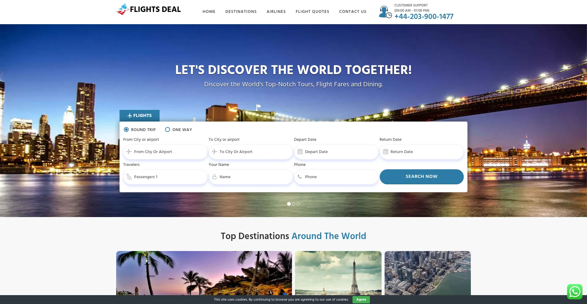 Unser Analyzer hat festgestellt, dass die Website flightsdeal.co.uk WordPress CMS verwendet. WordPress ist das weltweit beliebteste Content-Management-System und betreibt über 43 % der Websites.