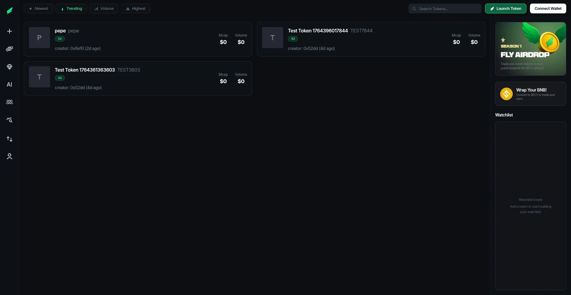 Trade and create tokens to earn points towards the $FLY airdrop!