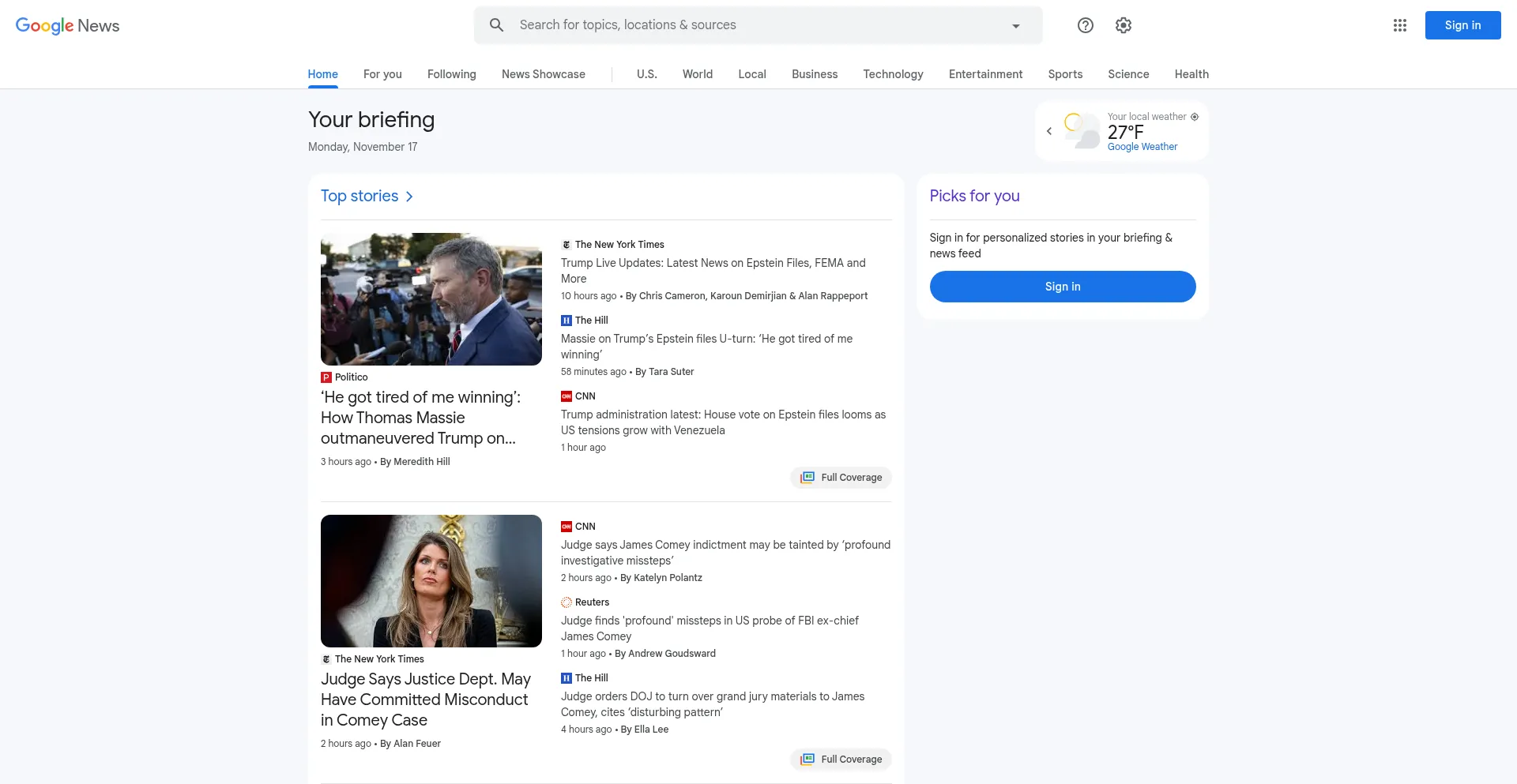 Comprehensive up-to-date news coverage, aggregated from sources all over the world by Google News.