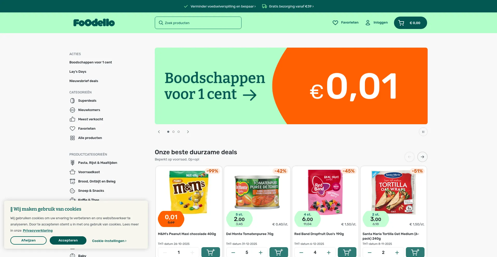 Boodschappen altijd met korting tot 80%! Gratis bezorging voor bestellingen boven de €39. Foodello - Meer korting. Minder voedselverspilling.