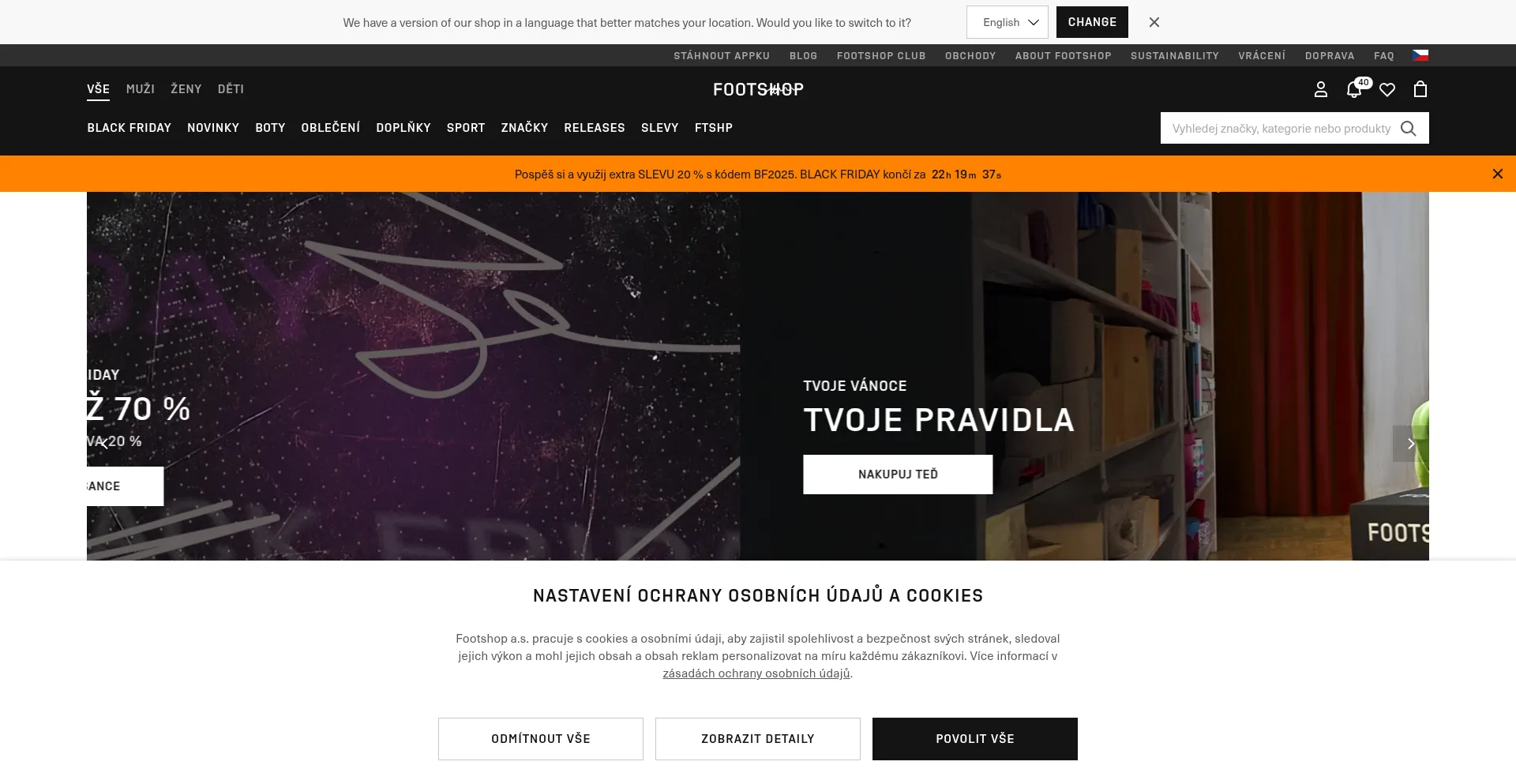 Die Website implementiert Cookie-Zustimmungsmechanismen in Compliance mit Datenschutzregulierungen wie DSGVO oder CCPA. Dies demonstriert, dass footshop.cz Datenschutzstandards einhält und Benutzern Kontrolle über persönliche Datenerfassungspraktiken bietet.