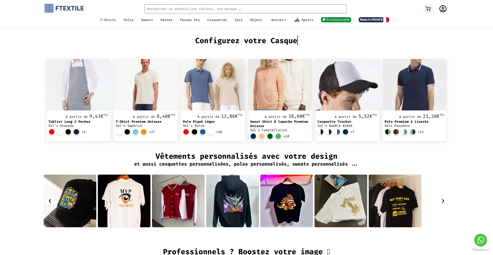 FTEXTILE | Grossiste & Imprimeur à Toulouse | Particuliers et Pros Commandez en ligne ou Devis Gratuit (+20 pièces) ! 24-48h Délais Express. T-Shirts, Polos, Casquettes, Sweats