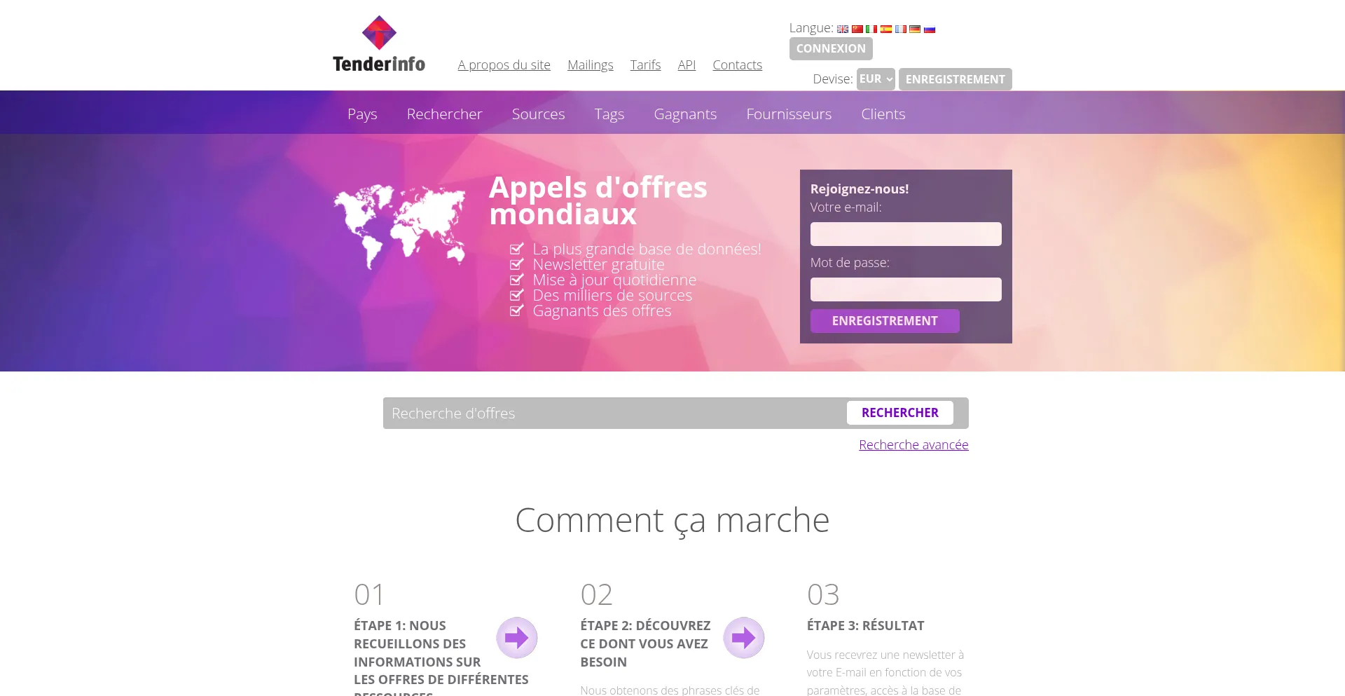 Offres et achats dans les pays du monde | Tenderinfo.org la base de données la plus complète d'appels d'offres locaux et internationaux.