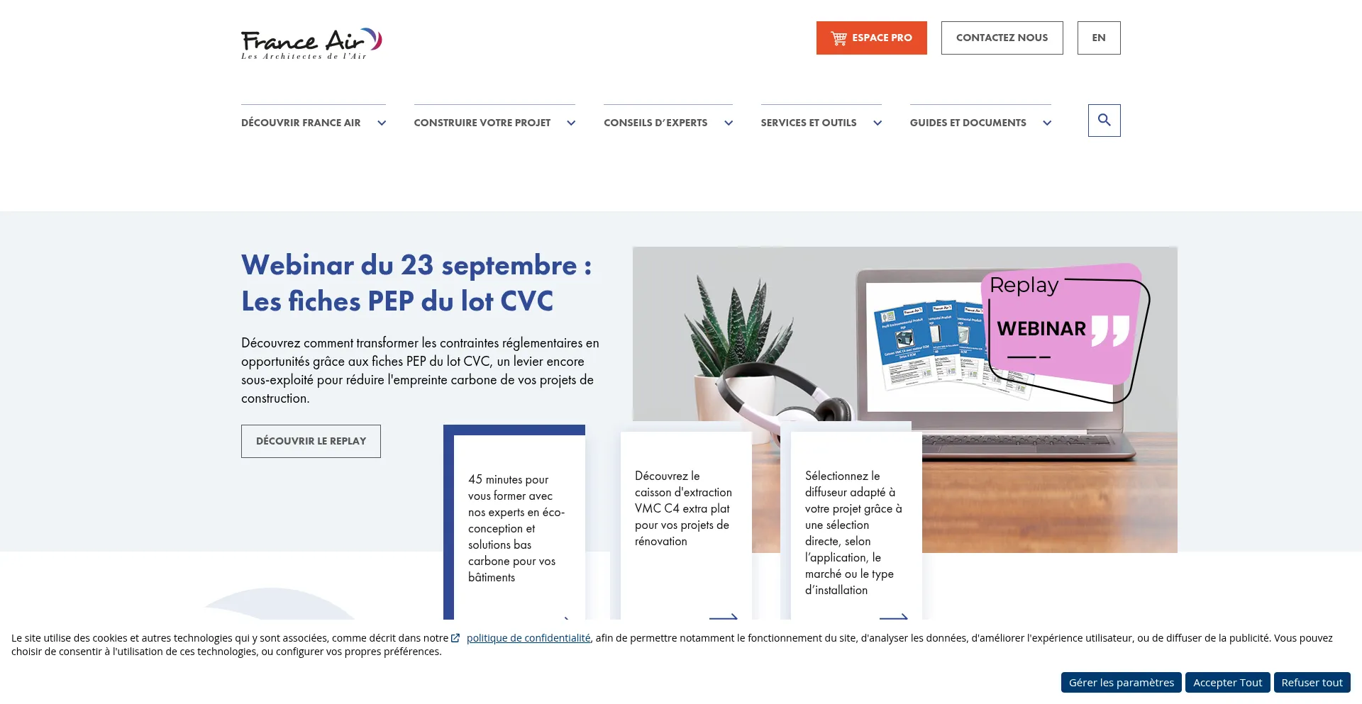 Expert de l’Air depuis 60 ans, France Air propose des solutions de ventilation complètes et adaptées à chaque projet de bâtiments tertiaires, résidentiels, industriels et...