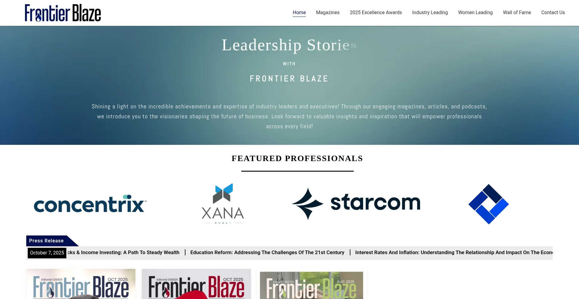 Frontier Blaze - Showcasing the achievements and expertise of distinguished industry leaders and C-level executives. Through in-depth magazines, articles, ...