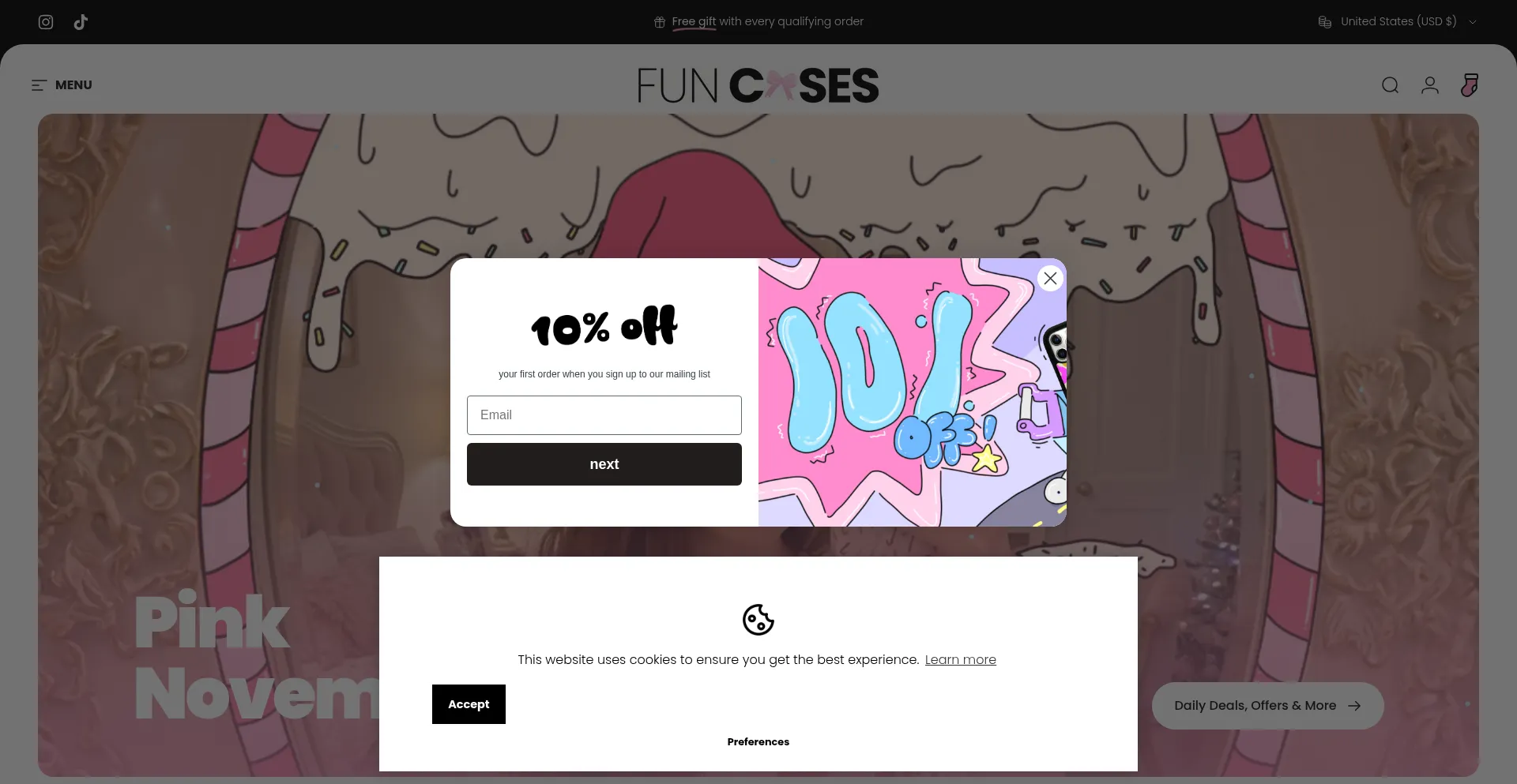 Die Website implementiert Cookie-Zustimmungsmechanismen in Compliance mit Datenschutzregulierungen wie DSGVO oder CCPA. Dies demonstriert, dass funcases.com Datenschutzstandards einhält und Benutzern Kontrolle über persönliche Datenerfassungspraktiken bietet.