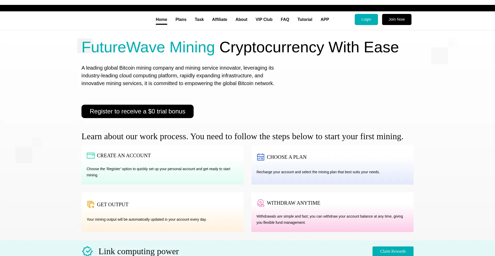 Die Website futurejap.com bietet wahrscheinlich Cloud-Mining-Dienste oder Kryptowährungs-Mining-Investitionen an. Einige Plattformen bieten legitime Mining-Mietdienste, während andere gefälschte Mining-Dashboards verwenden können, um virtuelle Erträge anzuzeigen, die nicht abgehoben werden können.