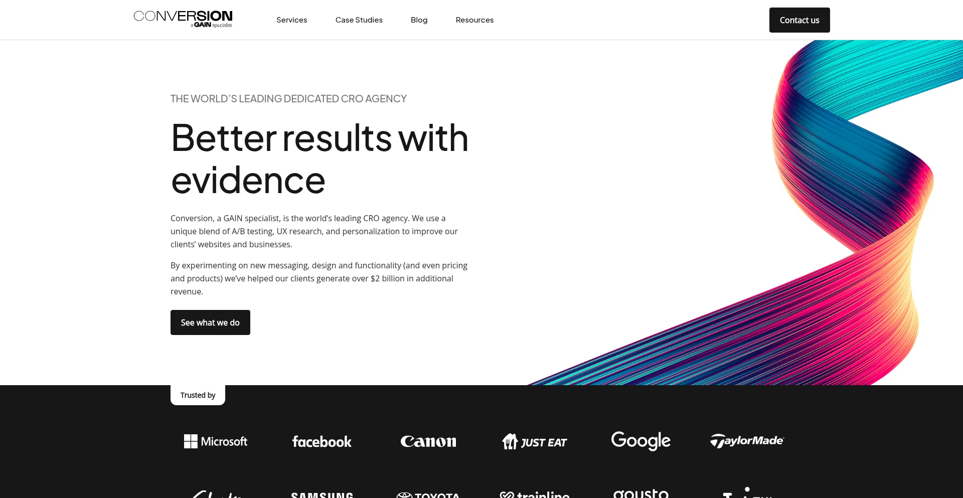 Conversion is a global CRO agency. We work with forward-thinking brands to improve their websites and businesses. Trusted by Microsoft, Meta, Dominos, Tommy Hilfiger, Enterprise...