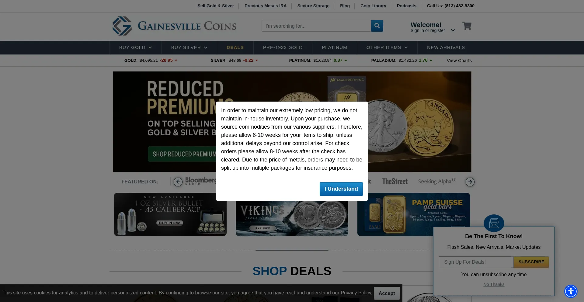 Gainesville Coins ® Offers Wholesale Pricing On Silver Coins, Silver Bars, Silver Bullion And Gold. Buy Silver And Gold Online, Or Call (813) 482-9300.