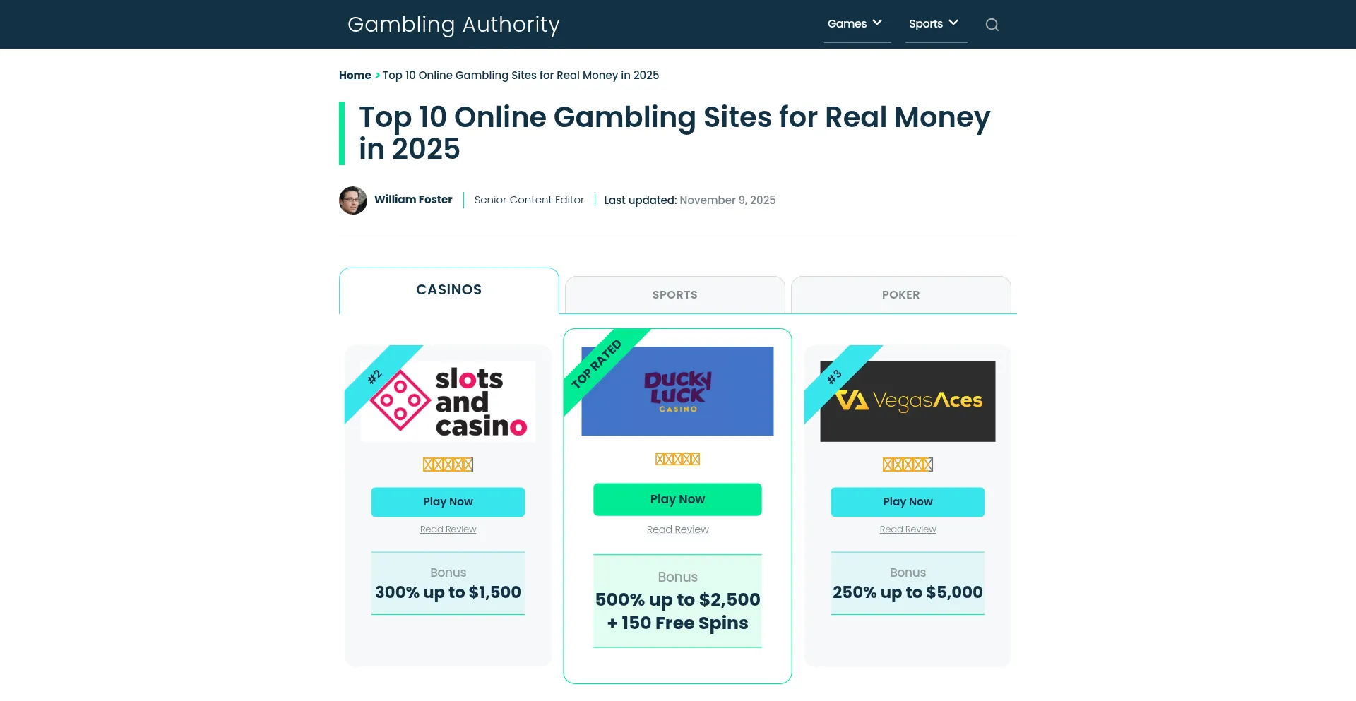 Top 10 Online Gambling Sites for Real Money in 2025