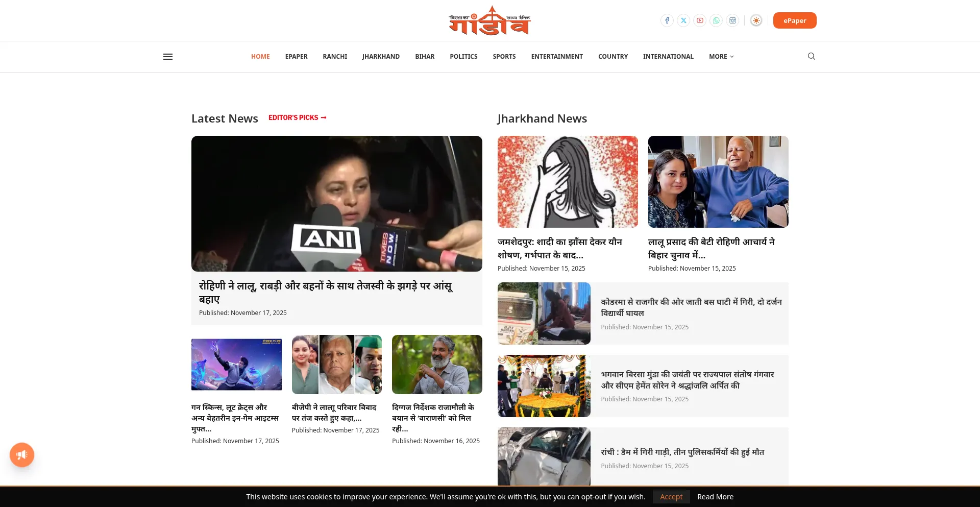 रांची न्यूज़ , झारखंड न्यूज़, Latest Hindi News - Gandiv Live