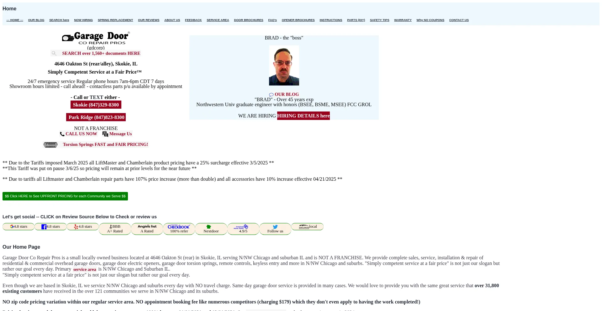 Garage Door Co Repair Pros is a small locally owned (W Brad Hershey) business at 4646 Oakton St (rear) in Skokie, IL serving N/NW Chicago and suburban IL and is NOT A FRANCHISE....